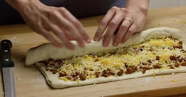 Mleté maso a sýr zabalila do těsta na pizzu. Konečný výsledek? Olíznete si prsty!