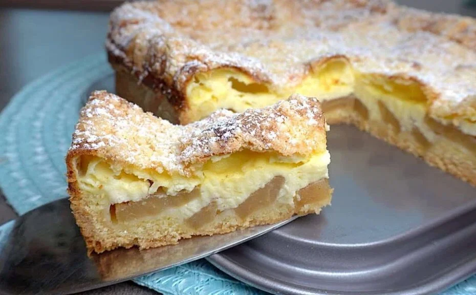 Velmi chutný jablečný koláč se zakysanou smetanou